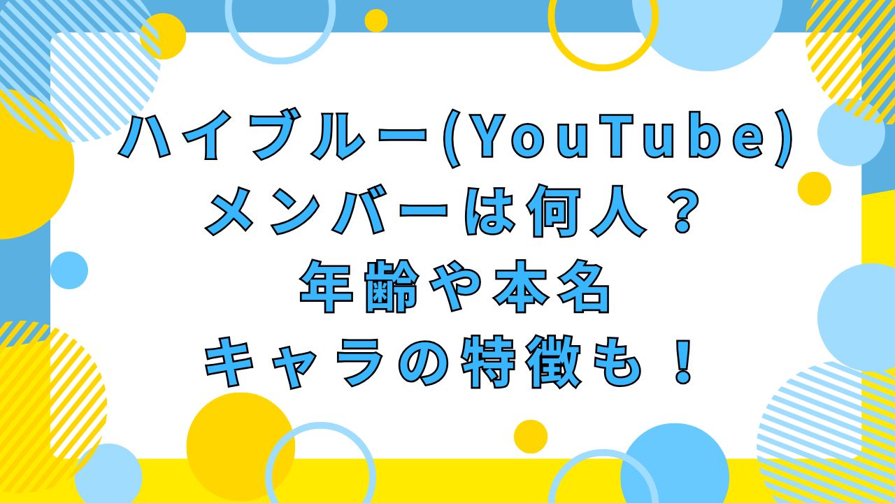 この記事では、ハイブルーのメンバーが何人なのかをはじめ、それぞれのキャラクターの特徴や、ハイブルーさん自身の年齢・プロフィールまでまとめてお伝えします。