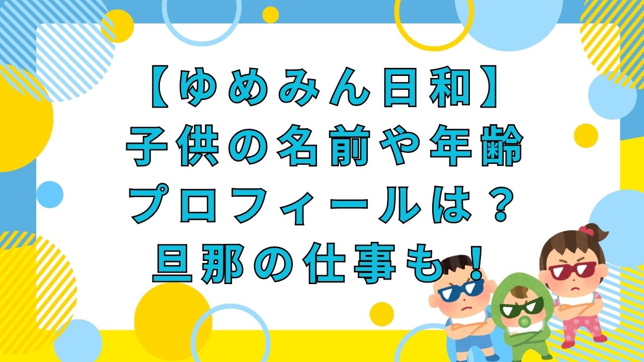 この記事では、ゆめみん日和の子供の名前や年齢などのプロフィールをはじめ、旦那さんの仕事まで、ゆめみん日和にまつわる気になる情報をまとめてご紹介します!